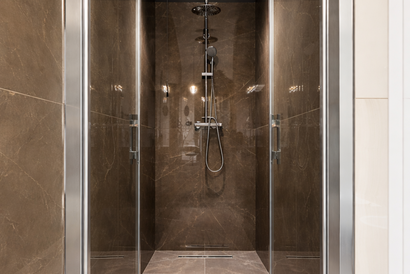 - bathroom with a spacious shower